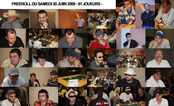 #2 : Le Freeroll de l'association Samedi 20 juin 2009 a eu lieu une assemblée générale de l'association Pokeralille suivie d'un tournoi Freeroll qui a regroupé 91 joueurs dans une très bonne ambiance. Vous pouvez lire le compte-rendu en cliquant ICI. (lien réservé aux adhérents). Quant au tournoi, que dire ? Des conditions de jeu très agréables, un service de restauration de grande qualité, des lots très attractifs ont permis à tout le monde de passer une très bonne après-midi. Le podium final sera 1. Lensois59000, 2. Bobby_pok, 3. Kazire59. Vous pouvez voir le classement complet ICI ... Les 16 premiers joueurs se sont partagés des droits d'entrée dans des tournois du Pasino, des mallettes de jetons Pokeralille, des cours à l'école de Poker de Lille, des vêtements Winamax... Un petit montage photo pour patienter jusqu'au prochain : L'aventure vous tente ? Alors rejoignez-nous ! Il n'est pas trop tard pour adhérer ! |