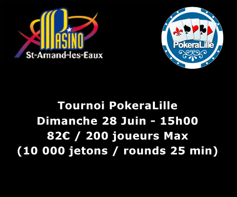 Après un faux départ indépendant de notre volonté, le championnat Winamax pour le side event à 1000 euros de Barcelone (2 packages d'une valeur de 2000$) va démarrer ce lundi 29 juin. Soyez nombreux au rendez-vous ! Je rappelle que ce championnat se jouera en 5 manches et qu'il est strictement réservé aux adhérents ayant payé leur cotisation. Tous les renseignements ICI. Encore une fois, il n'est jamais trop tard pour adhérer ! Et puis, retrouvez comme chaque mois, le tournoi Pokeralille au Pasino de Saint-Amand les eaux. La prochaine a lieu le dimanche 28 juin à 15h.